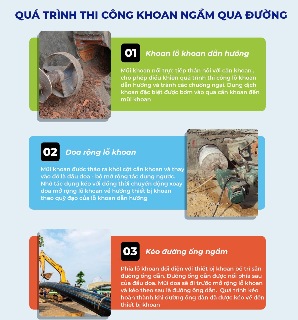 Quy trình thi công khoan ngầm ngang đường rõ ràng chuyên nghiệp